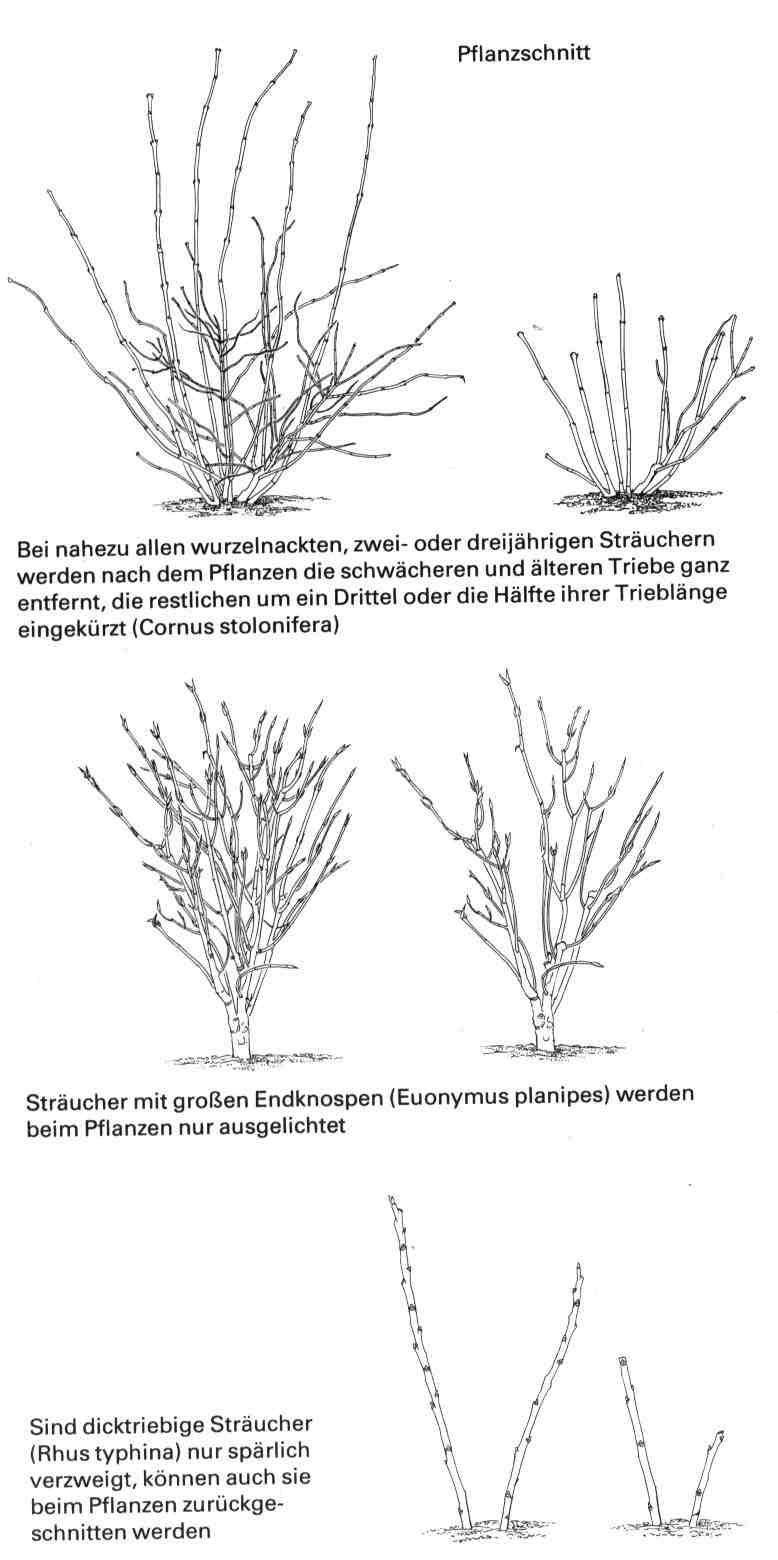 - mit Ballen gelieferte Sträucher benötigen keinen Rückschnitt