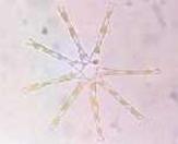 die tafelförmige Kolonien bildet. Weitere Beispiele sind die Kieselalge Asterionella